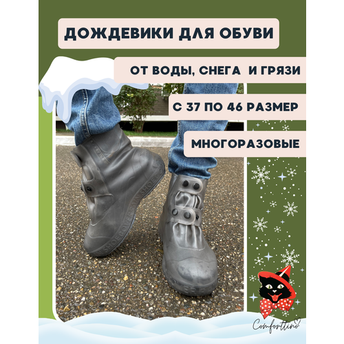 Чехлы на обувь для взрослых и подростков с защитой от дождей и грязи, райнеры серые размер 43 - 45