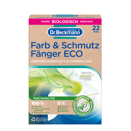 Beckmann с микрофиброй действуют быстрее и надежнее. Тонкие волокна микрофибры имеют еще большую площадь поверхности, на которую может оседать больше частиц красителя и грязи. Это обеспечивает лучшую защиту от окрашивания тканей. Быстро абсорбируют частицы краски, попавшие в воду, и удерживают их, предохраняя вещи от окрашивания. Так все предметы одежды защищены от изменений цвета, то же самое относится к текстильным изделиям с белыми вставками. Предотвращают наложение полинявшей краски в виде серой вуали на цвет текстильных изделий: цвета долго сохраняют свою яркость. Цветное, темное и белое белье можно без проблем стирать вместе. Это означает сокращение сортировки и использование стиральной машины с полной загрузкой, что экономит время, энергию и воду. Способ применения: 1. Положите белье в стиральную машину, как обычно. Используйте обычную дозировку. 2. Положите салфетку Dr. Beckmann в барабан вместе с бельем и запустите желаемую программу стирки. 3. Избыточный краситель впит