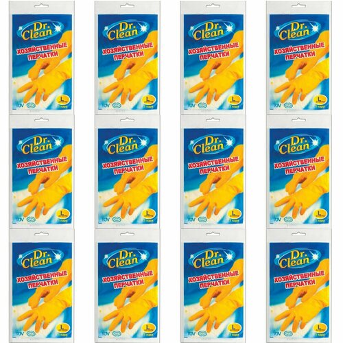 Dr. Clean Перчатки хозяйственные Латексные, размер L, 12 уп