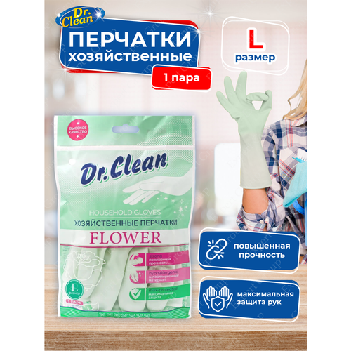DR.CLEAN Перчатки хозяйственные Flower, поливиниловые, L, 9 шт