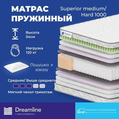 Матрас Dreamline Superior Medium/Hard 1000 80х190 см, независимый пружинный блок S1000, трикотаж