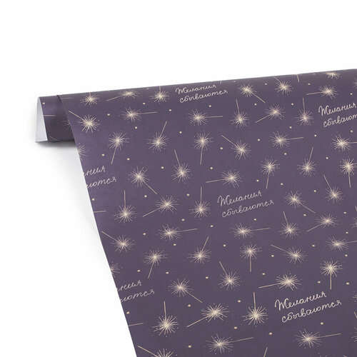 Упаковочная бумага (0,7*1 м) Желания сбываются, Темно-синий, 10 шт.