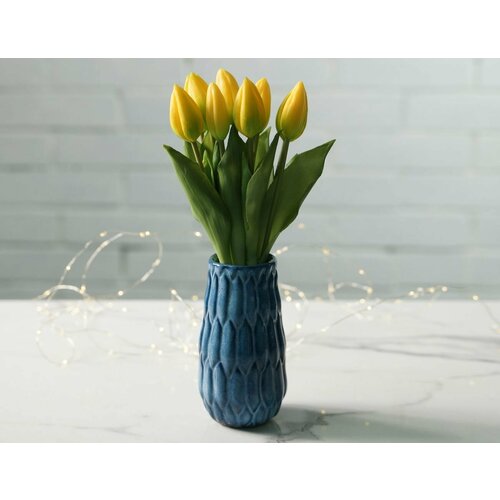Искусственный букет тюльпаны "весеннее солнце", силикон, жёлтые, 29 см (букет – 9 шт.), EDG 214586-20-1