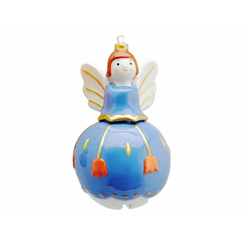 Ёлочная игрушка колокольчик - небесный вестник, голубой, керамика, 12 см, подвеска, EDG 019463-95-4
