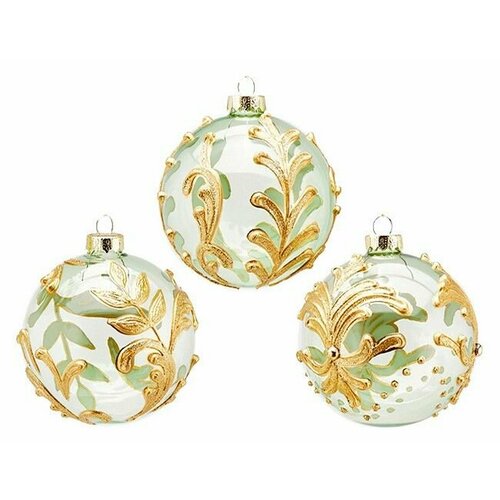 Очаровывающий дуэт светлой зелени и золота придает набору новогодних шаров Royal Grandeur подчеркнуто элегантный вид. Все елочные игрушки созданы для праздника, но эти всем своим видом сообщают: намечается нечто волшебное! Нас ждут радость и веселье!В наборе: 6 шт. Диаметр: 10 см. Материал: стекло. Цвет: эвкалиптовый.