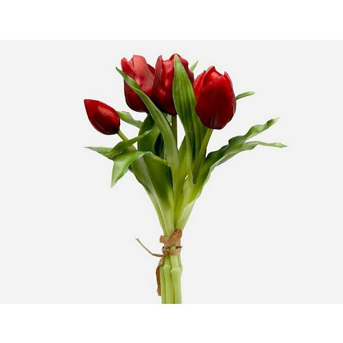Искусственный букет тюльпаны "нежность весны", силикон, красный, 28 см (букет – 5 шт.), EDG 216003-40-1