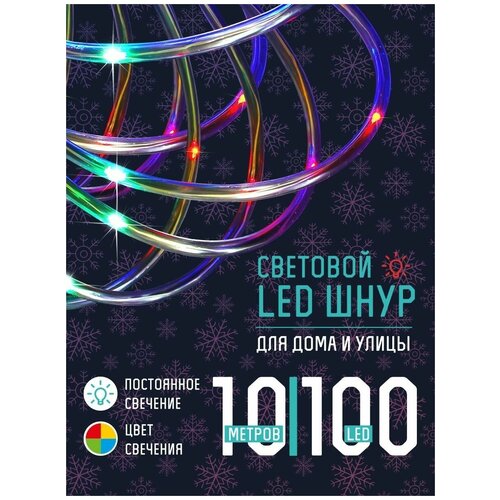 Сноу БУМ Эл. гирлянда шнур 10м, 100LED, мульти, пост. свеч, ПВХ прозр, d5мм, IP44, 220В