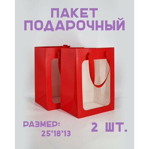 Пакет подарочный с прозрачным окном 2 шт. Размер 25*18*13 см. Цвет