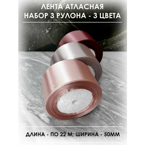 Лента атласная 5 см упаковочная набор 1 широкая для букетов и праздника