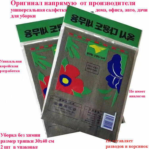 Салфетки для уборки корейские, микрофибра, антибактериальный эффект, серые, 30х40 см, 2 шт