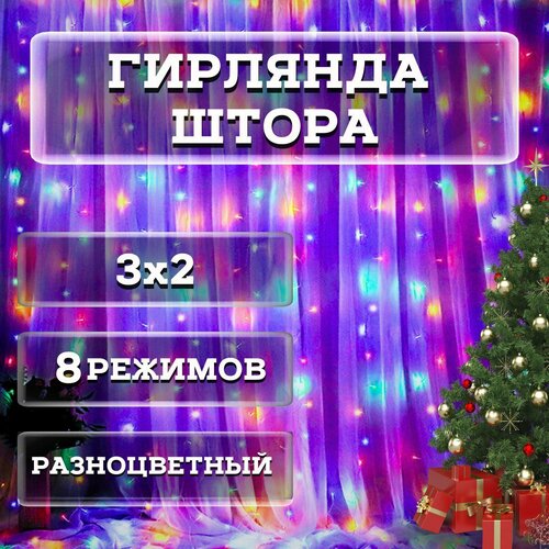 Светодиодная гирлянда-штора 3х2, разноцветный
