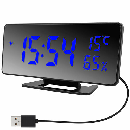 Часы электронные, зеркальные VST-888-5 синие цифры/ цифровые, автоматическая яркость, с температурой и будильником