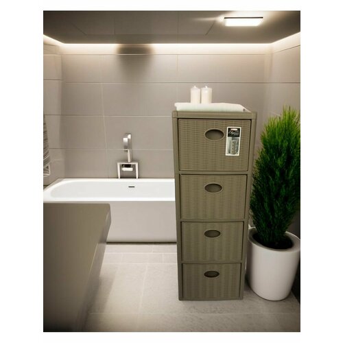 Комод универсальный пластиковый узкий высокий 4 секции "Elegance mini" цвет- серо-коричневый