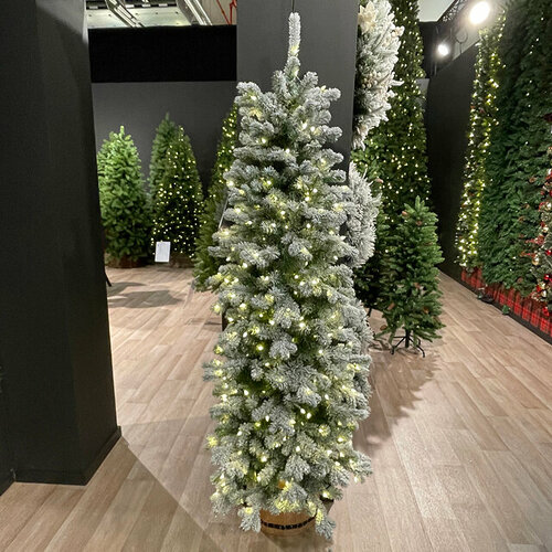 Эта елка является искусственной и выполнена из ПВХ хвои, имитирующей настоящее дерево, идеально подходящее для тех, кто хочет наслаждаться новогодней атмосферой, но не желает заботиться о живой растительности. Ель имеет узкую форму, что позволяет разместить ее в маленьких комнатах. Крепление веток отгибающееся, что обеспечивает легкость в позиционировании и выравнивании головок ветвей.