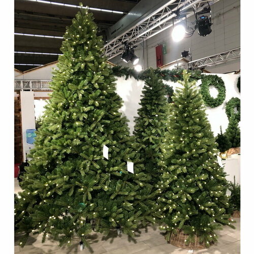 Искусственная ель "Кэррингтон" (литая хвоя PE+PVC), зелёная, 400 тёплых белых LED-огней, 228 см, National Tree Company