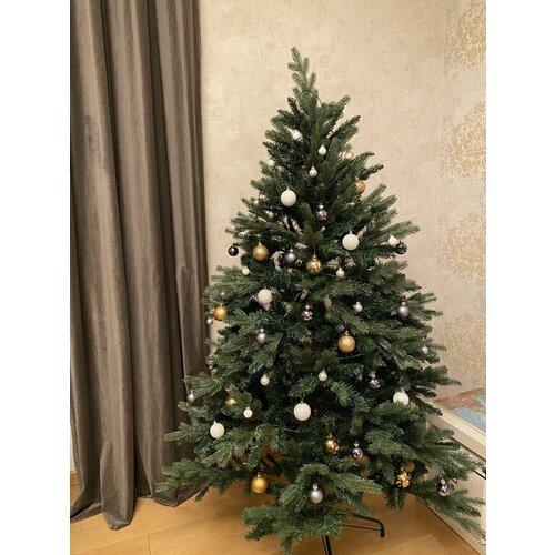 Наша елка выполнена полностью из литого мягкого материала, благодаря чему не колется и смотрится совсем как настоящая вплоть до самых маленьких иголочек. Густая хвоя не осыпается, силиконовые иголки мягкие и приятные на ощупь. Диаметр нижнего яруса новогодней елки – 65 см.