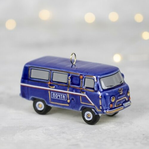 Елочная игрушка/транспорт/машина "Буханка "почтовая" синяя /Фарфор