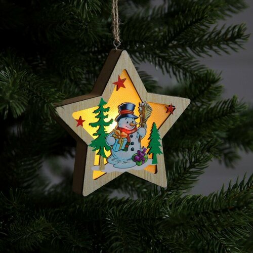 Luazon Lighting Ёлочная игрушка «Звезда со снеговиком», от батареек, свечение тёплое белое