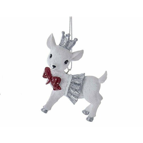 Ёлочная игрушка оленёнок сильвери в платице, полистоун, 7.5 см, Kurts Adler C7633-2