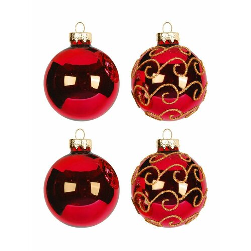 Новогоднее подвесное украшение "Шары красные с золотом" из стекла, набор из 4 штук / 6х6х6см арт.90646