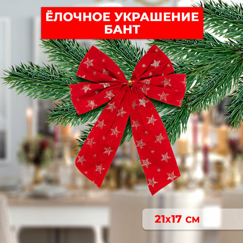 Елочная игрушка новогоднее украшение бантик на елку, для декора дома и в подарок / 17х21см