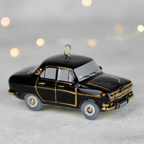 Ёлочная игрушка/ транспорт/ машина"Двадцать четвертая " черная/ Фарфор