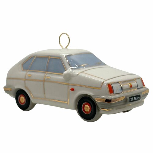 Ёлочная игрушка/ транспорт /машина "Двадцать четвертая" белая/ Фарфор