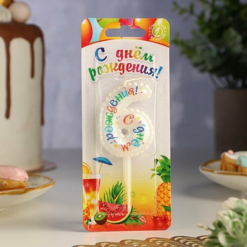 Свеча в торт на шпажке "Воздушная цифра. С Днем Рождения!", цифра 6