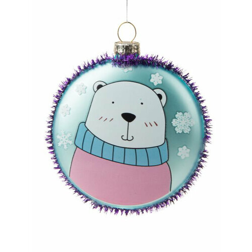 Елочная игрушка стеклянная Magic Time Мишка с декором 8х8х1,5 см