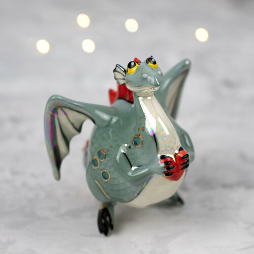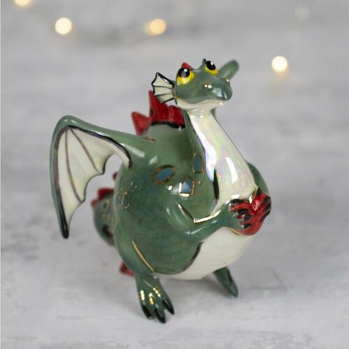 Ёлочная игрушка /сувенир/символ года "Дракон с сердцем"/Фарфор