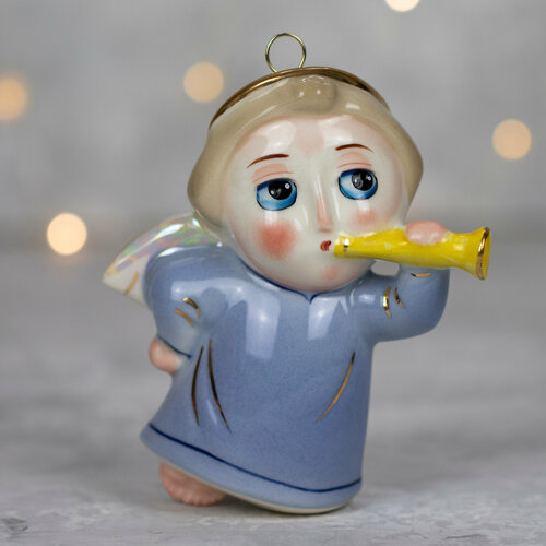 Ёлочная игрушка/ сувенир "Ангел с дудочкой"/Фарфор