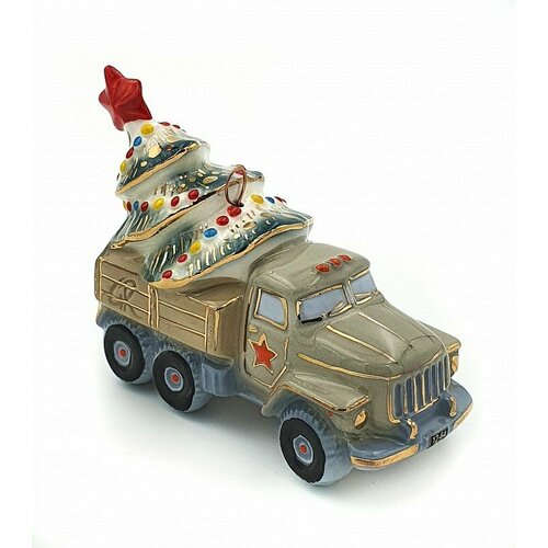 Ёлочная игрушка/транспорт/машина "Грузовик с ёлкой" /Фарфор