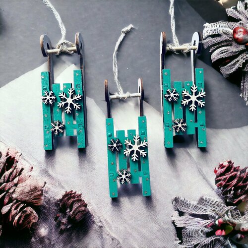 Деревянные новогодние ёлочные игрушки "Новогодний олень", набор 12 штук