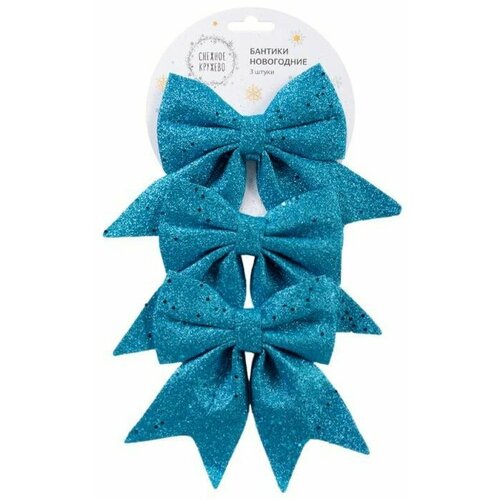 Новогоднее ёлочное украшение "Бант" голубой блестящий, 3 штуки.