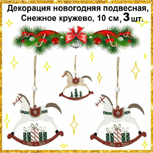 3 шт. Лошадка-качалка, Декорация новогодняя подвесная, Снежное кружево, 10 см, елочная новогодняя игрушка, дерево