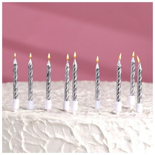 Набор свечи в торт "Спираль", 200шт, 7 см, серебряный металлик 7915893