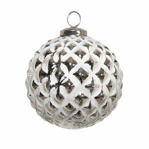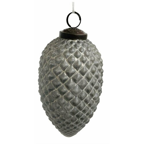 Стеклянная шишка серебристый металлик, 13 см