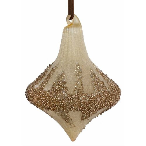 Стеклянная капля коричневая бисерная золотая, 9,5 см