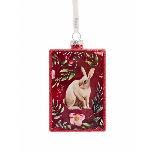 Елочная игрушка стеклянная Magic Time Символ года Лесной Зайчик в красном c наполнением из ПЭТ 2,5x6,6x11,4 см