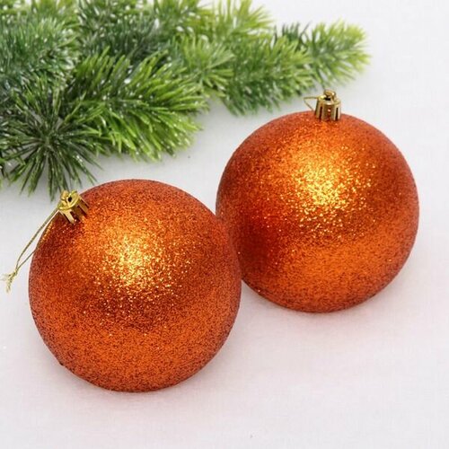 Новогодние шары 10 см (набор 2 шт) "Глиттер", янтарь