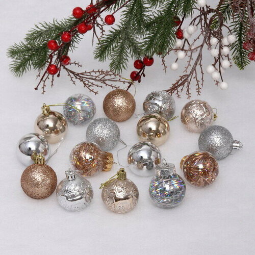 Набор шаров «Волшебный вальс» 5 см (16 предметов), шампань/серебро