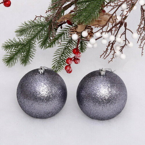 Новогодние шары 10 см (набор 2 шт) «Глиттер», графит