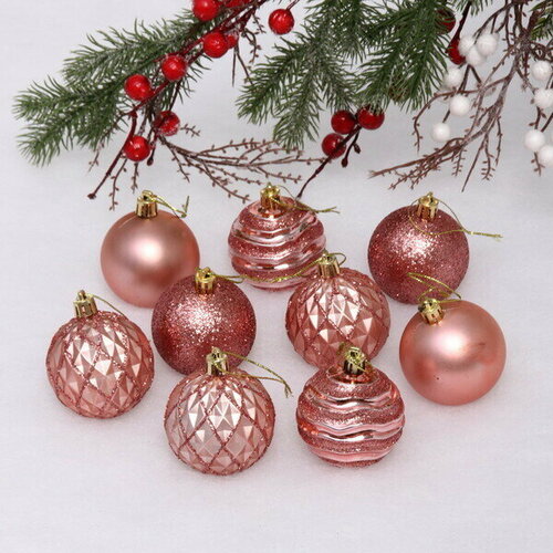 Набор шаров «Diamond shine» 6 см (9 предметов), розовое золото