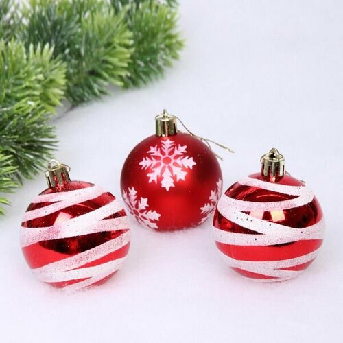 Шары елочные золотая сказка, набор 6 штук, пластик, 8 см, красные (глянец, матовый, глиттер), 590873 (цена за 1 ед. товара)