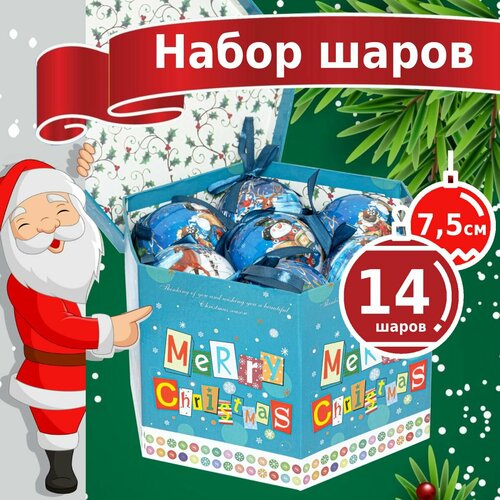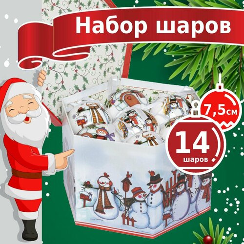 Елочные шары набор Winter Glade - 7514G077 с рисунком 7,5 см 14 шт