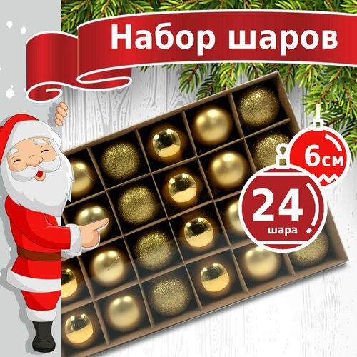 золотистый, розовый, синий, серебристый, фиолетовый, красныйНабор ёлочных шаров будем идеальным дополнением для наряжания новогодней елки и создания яркой праздничной атмосферы. Внутри набора вы найдете 24 штук шаров диаметром 6 см, каждый из которых выполнен с использованием качественных материалов.