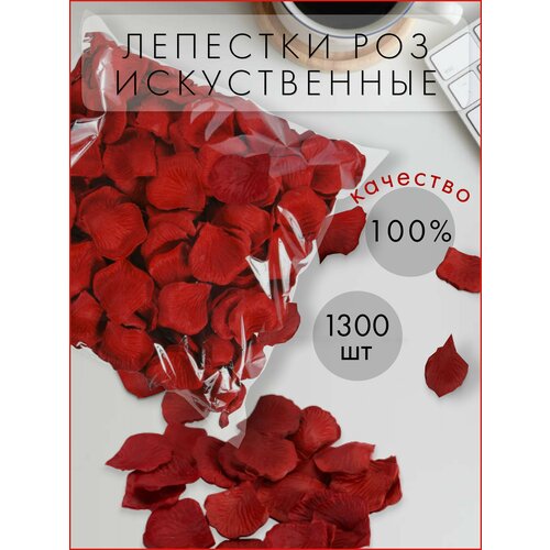 Искусственные лепестки роз 1300 шт. темно-красные. Декор для свадебной вечеринки, романтической ночи, декорации для торжеств и фотосессии. LuxDekor.