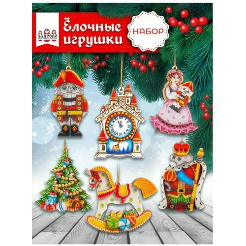 Деревянные новогодние ёлочные игрушки "С рождеством", набор 12 штук