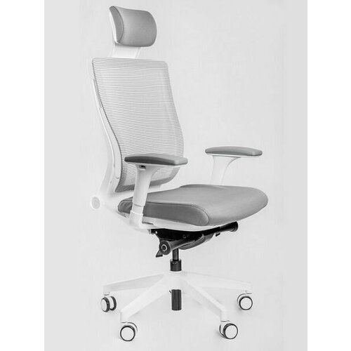 Офисное кресло Falto Trium с белым каркасом обивка сетка/ткань, сиденье слайдер, спинка анатомическая, механизм мультиблок