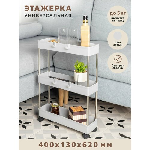 Этажерка GASTRORAG GR-790-3G, узкая пластиковая, на колесиках, органайзер для кухни, полка для ванной напольная, тележка косметологическая
